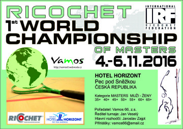 Turnaj s názvem Richochet Masters 2016 je naplánován na 4. až 6. listopadu v Peci pod Sněžkou a proběhne pod záštitou nejen ČRA, ale i IRF, tedy České, resp. Mezinárodní richochetové federace. Účastníci finálových zápasů se utkají v neděli 6. listopadu od 11 hod.