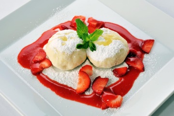 Tvarohové knedlíky s jahodovou omáčkou a kousky čerstvých jahod